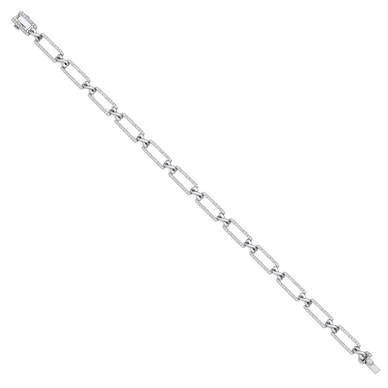 Elegance, strength, and confidence are just some of the words that come to mind with this gorgeous piece. Beautifully crafted from 9ct white gold, each link is meticulously set with white diamonds totalling 1.13ct for brilliant sparkle! Joined to one another with a series of gold twists, the flowing curves of the knots compliment the sharp, straight lines of the links to create a stunning statement piece! Held together by its high quality, stone set box clasp that flows with the design, eliminating the need for a jump ring. This is a ‘must have’ bracelet for those occasions that require some glitz and glamour! Price includes GST.