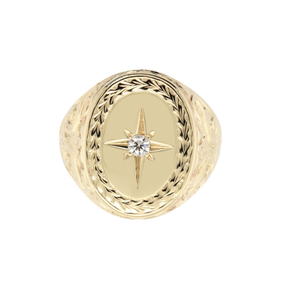 A highly detailed solid gold signet ring from W&D. Created by their team of expert craftsman. This signet design stands out from the crowd. The one we have for you here is crafted from 9ct yellow gold and boasts a stunning 0.10ct GHSI2 natural diamond set in the center. However, this striking ring is available in 9ct, 14ct or 18ct, yellow or white gold. The team at Worth can even create a two-tone style by combining yellow and white gold upon request. Other sizes available. Price includes GST.